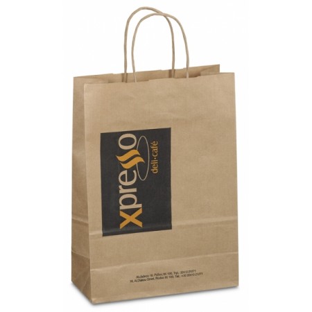 Ecological paper shopping bags made of kraft paper and recyclable paper. Paper bags available at wholesale for every type of business. They are ideal for printing your corporate logo. They combine quality and flawless design.