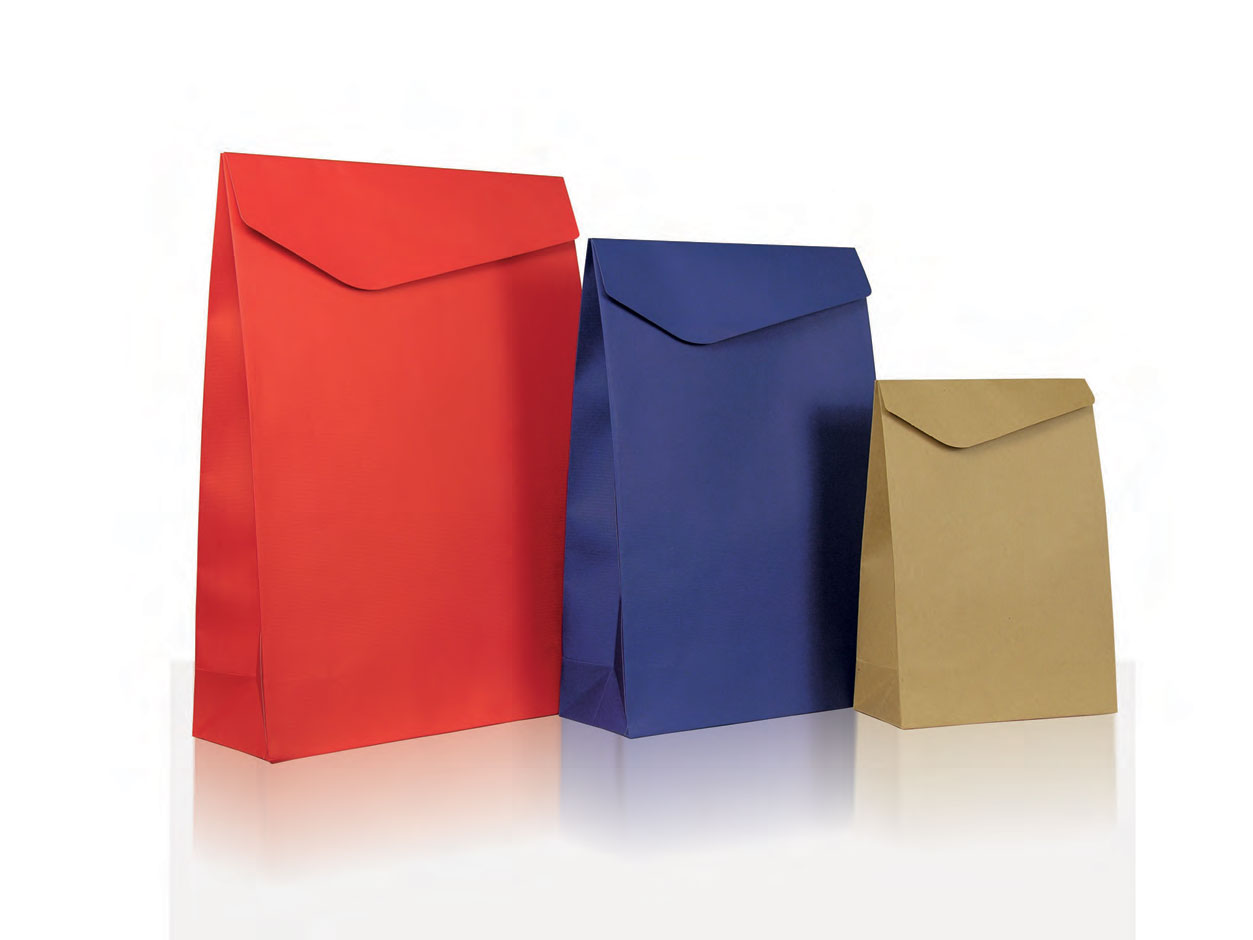 Χάρτινα φάκελα σε χρώματα κραφτ, κόκκινο, μπλε σε μικρή ποσότητα.