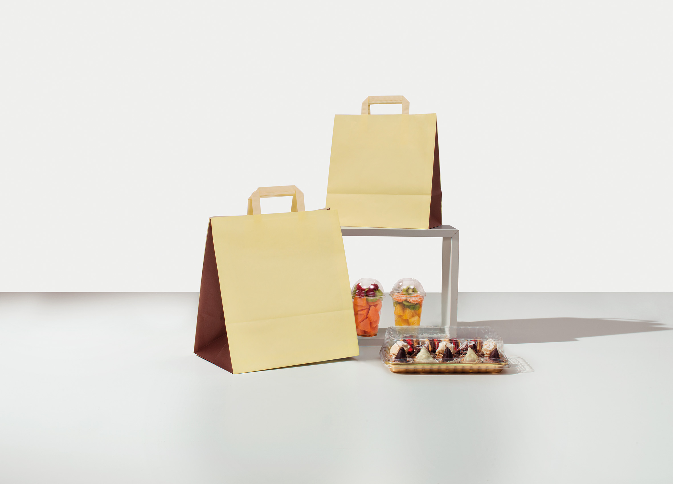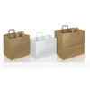 Χάρτινες Τσάντες Delivery & Ζαχαροπλαστείου με φαρδύ πάτο για μεταφορά κουτιών. Χαρτί κράφτ με πλακέ ή στριφτό χάρτινο χεράκι. Χαρτί πολυτελείας.